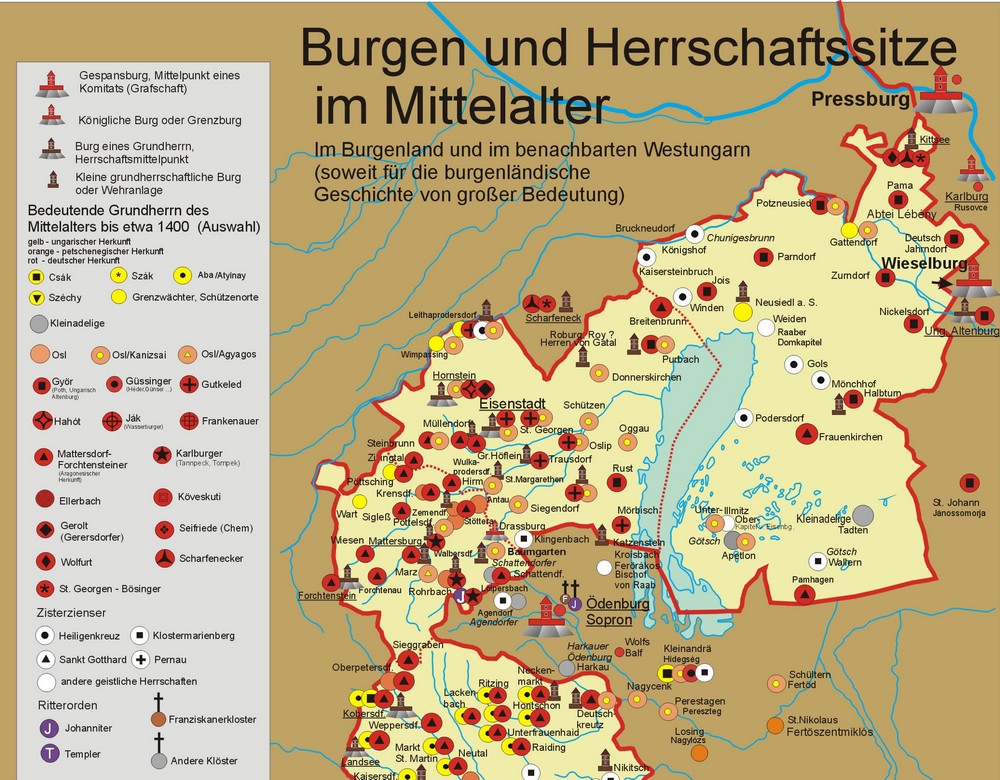 Im 14. Jahrhundert kam es durch die Kanizsai (auch Kaniszay) im Eisenstädter Becken zu einer ansehnlichen Herrschaftsbildung. Die Kanizsai waren ein Seitenzweig des weit verzweigten Stammes der Familie Osl, die im 12. und 13. Jahrhundert im Ödenburger Komitat zu den einflussreichsten Familien zählte. Ihr Aufstieg begann damit, dass sie sich der Adelsrebellion gegen den neuen König Karl I. Robert nicht anschlossen. Ihre Königstreue wurde mit hohen Amtern vergolten, wodurch sie sich ein stattliches Vermögen ansammelten. Die Kanizsai kauften 1365 von den Wolfurt die Burg Hornstein, um die sie einen Herrschaftsbezirk aufbauten. Auch Eisenstadt und große Besitzungen im Wulkatal gehörten dazu. Erst in der 2. Hälfte des 14. Jahrhunderts entstand die Herrschaft Eisenstadt. Bis zu Beginn des 15. Jahrhunderts kamen die Kanizsai auch in den Besitz der Burg Kapuvàr. Des Weiteren verfügten sie über die Märkte Tschapring (Csepreg) und Sàrvàr sowie über die Burgen und Herrschaften Lockenhaus und Sàrvàr.