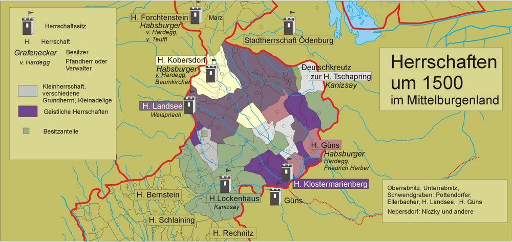 Herrschaften um 1500 im Mittelburgenland