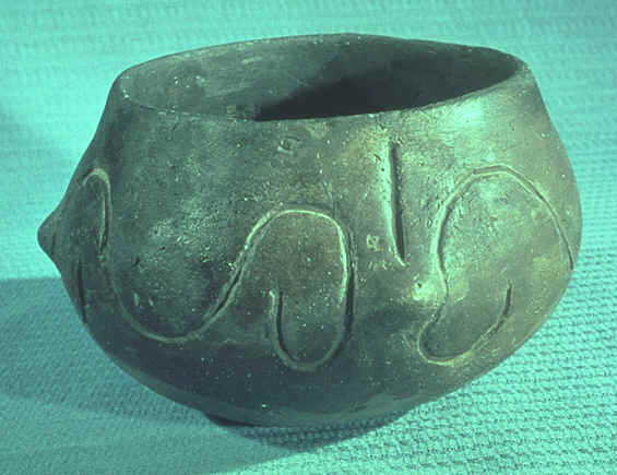 Die archäologisch wichtigste Hinterlassenschaft der jungsteinzeitlichen Bauern sind Tongefäße. Zu den ältesten Formen gehören die halbkugeligen Gefäße, die man als "Bomben" bezeichnet. Die Bombe von Winden etwa gehört in die älteste Phase der Jungsteinzeit, sie ist etwa 8.000 Jahre alt. Später wurden auch konische Becher, Hängegefäße, Schalen und Schüsseln erzeugt. Die meisten dieser Linearbandkeramik - Gefäße der donauländischen Lössbauern sind mit Spiralmustern geschmückt. Manchmal wurden auch kleine Dellen als Verzierungen angebracht, sodass man von "Notenkopfkeramik" spricht.