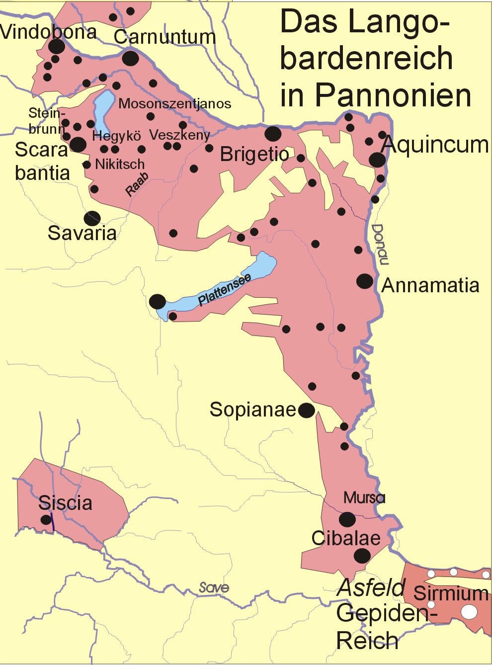 Die im Herbst 526 nach Pannonien eingedrungene erste Welle der Langobarden tat dem Wesen nach nichts anderes, als dass sie entlang der Donau von Wien bis südlich von Budapest die Kontrolle über die Befestigungswerke und die Furten übernahm. Die Gräberfelder der ersten Langobardischen Siedler liegen bei den ehemals römischen Zentren. Die Eroberer ließen sich offenbar in früheren römischen Siedlungen nieder. Eine Massenumsiedlung des langobardischen Volkes fand 546/47 statt, als ganz Westungarn und das Burgenland unter die politische Oberhoheit der Langobarden gekommen war, doch das ganze Gebiet wurde auch dann noch nicht besiedelt. Eine kleine Enklave der von den Langobarden unterworfenen Heruler bestand weiterhin im Umkreis des Neusiedlersees und der angrenzenden Ausläufer der Ostalpen (Hegykö- Gruppe), während das übrige Gebiet von den Langobarden besetzt war.